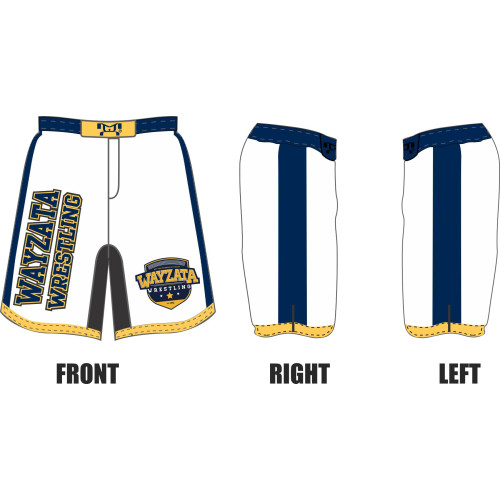 White/Navy/Gold Fight Shorts w/ 2-Location Embroidery.